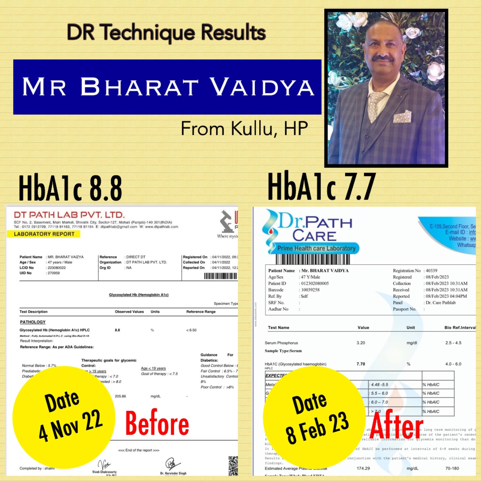 I was unable to manage my sugar levels even with regular medication. Then, I started following "HH Magic Techniques." by Mandeep Singh.