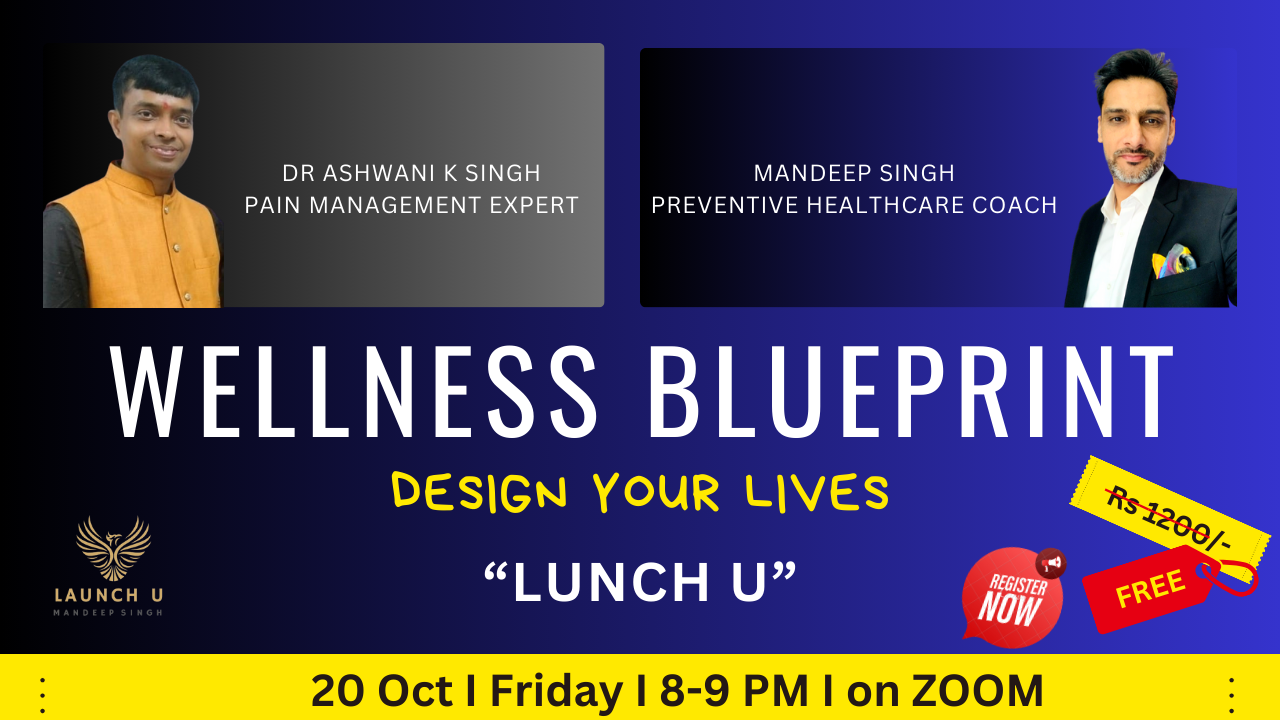 In this wellness blueprint Session, you will learn the fundamental principles and practices to improve your overall well-being and live a healthier life. Whether you are just beginning your wellness journey or looking to enhance your existing habits, this course provides a comprehensive guide to achieving optimal wellness. Join us as we explore various aspects of physical, mental, and emotional well-being, and discover strategies to create a personalized blueprint for a healthier lifestyle.